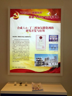 2017年9月28日至29日,在中国(太原)煤炭交易中心举办了由山西省科技厅、山西省科学技术协会主办的《砥砺奋进的五年——山西省喜迎“十九大”科技成果展》。该展览主要展示“十二五”期间和十八大以来山西省取得的重要科技成果,特别是在新材料、新能源、新能源汽车、节能环保、生物医药、煤层气等新兴产业领域取得的优秀科技成果,以及院士工作站建设成果。精细化学品工程中心的“合成1,4-丁二醇加氢催化剂的研究开发与应用”项目参加了此次成果展。